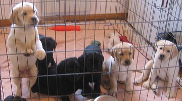 Here's how Elmer got started: Mother, Soffie (a great-niece of Ada's), is the dear girl of the Gilmors, the famous glassblowers in Millerton, NY. Father, Yeager ("Yeags") lives in Providence, RI and is a hot shot champion on the hunter trials circuit. He's a Big Boi. Elmer's litter had 3 yellow brothers, a black brother and black sister. He was born on September 22, 2008 and we kidnapped him on November 20.
