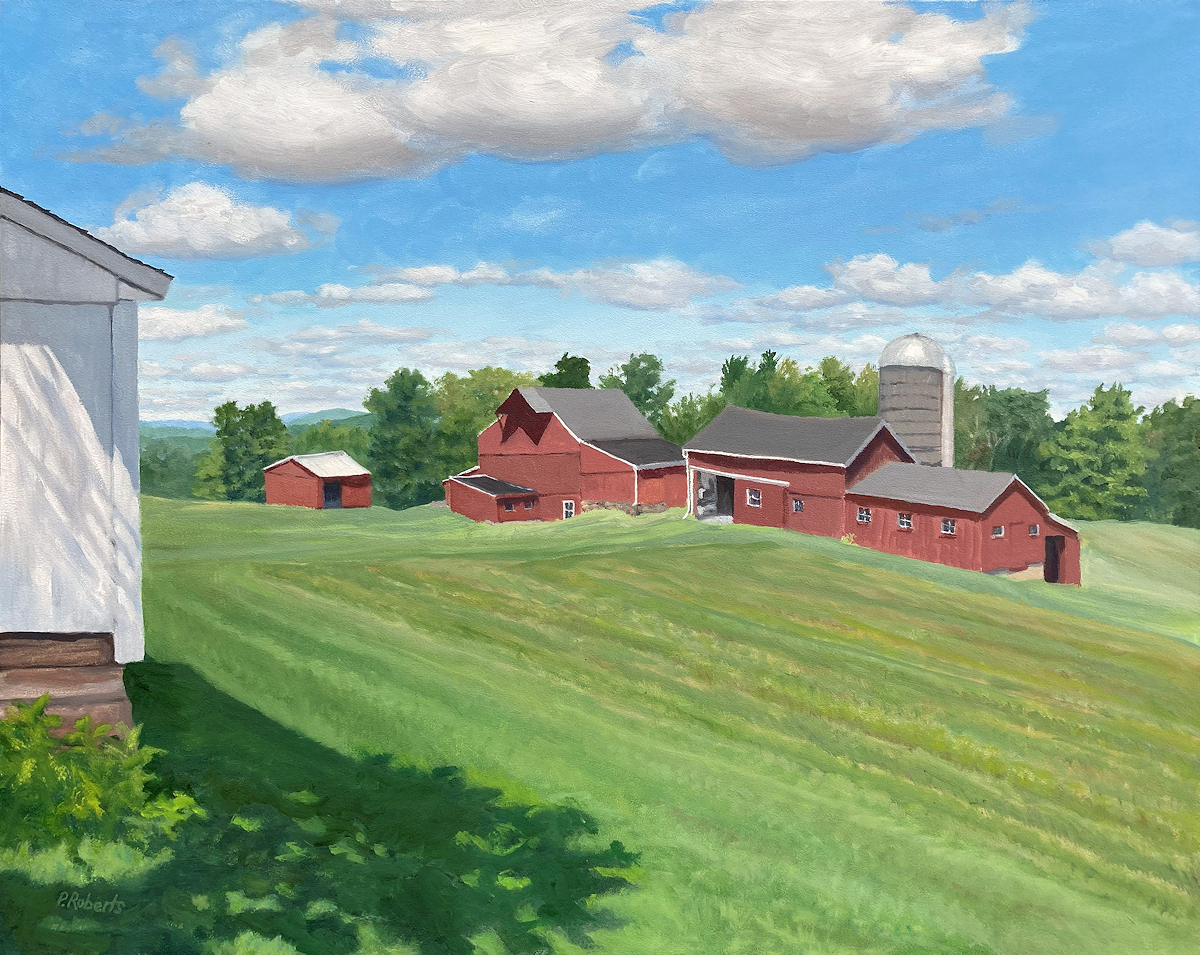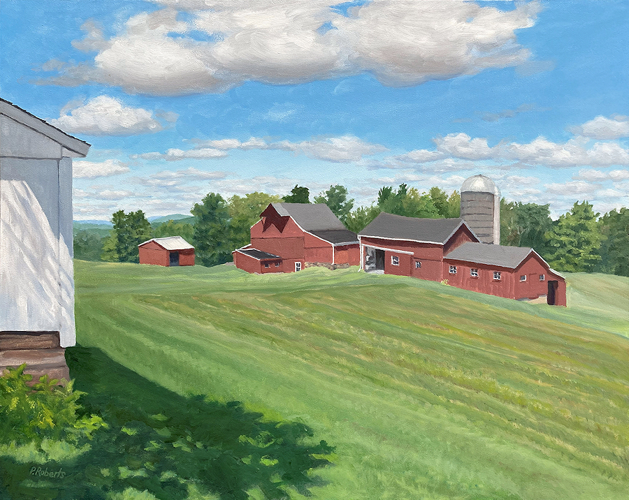 Barns; oil on panel; 16" x 20"